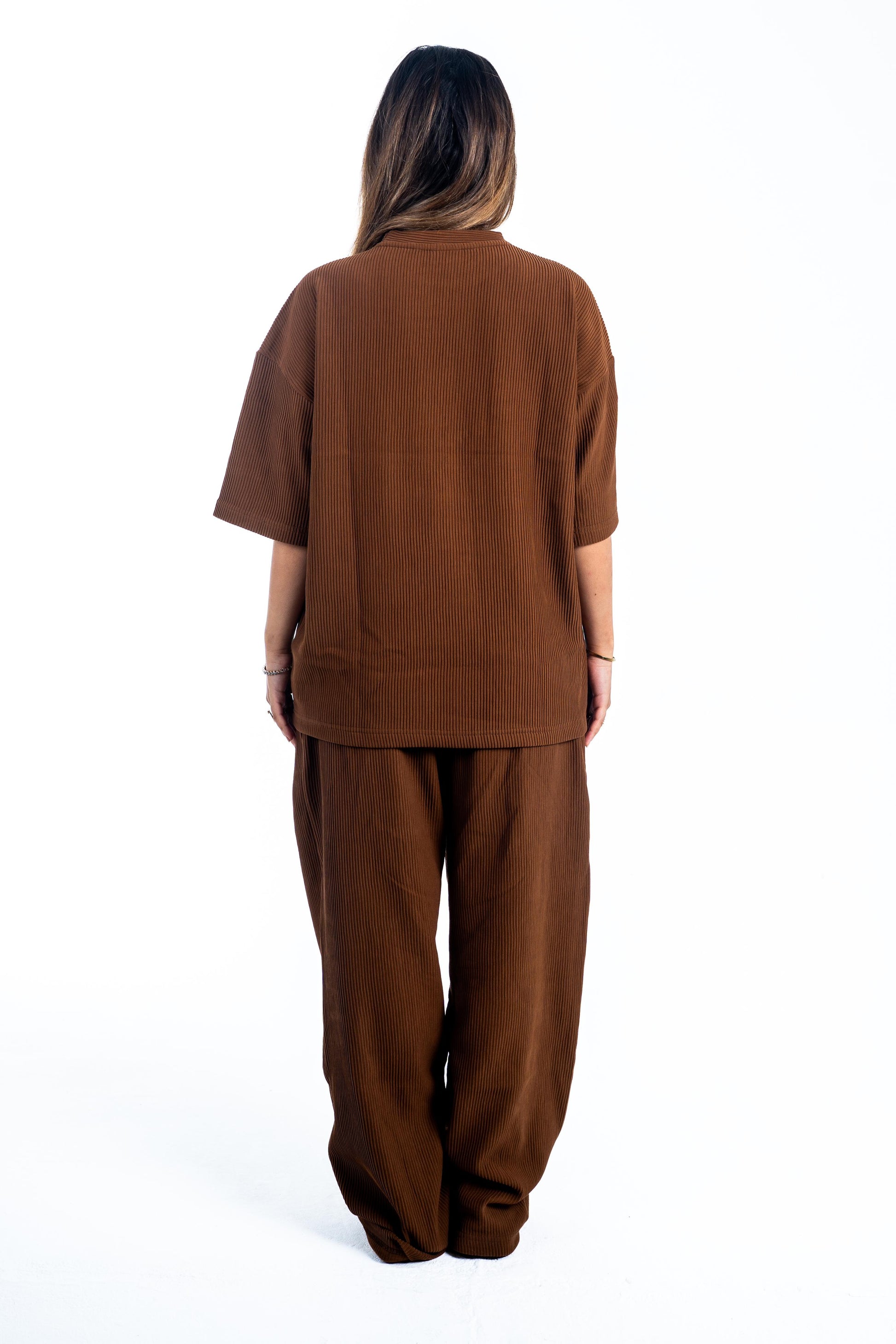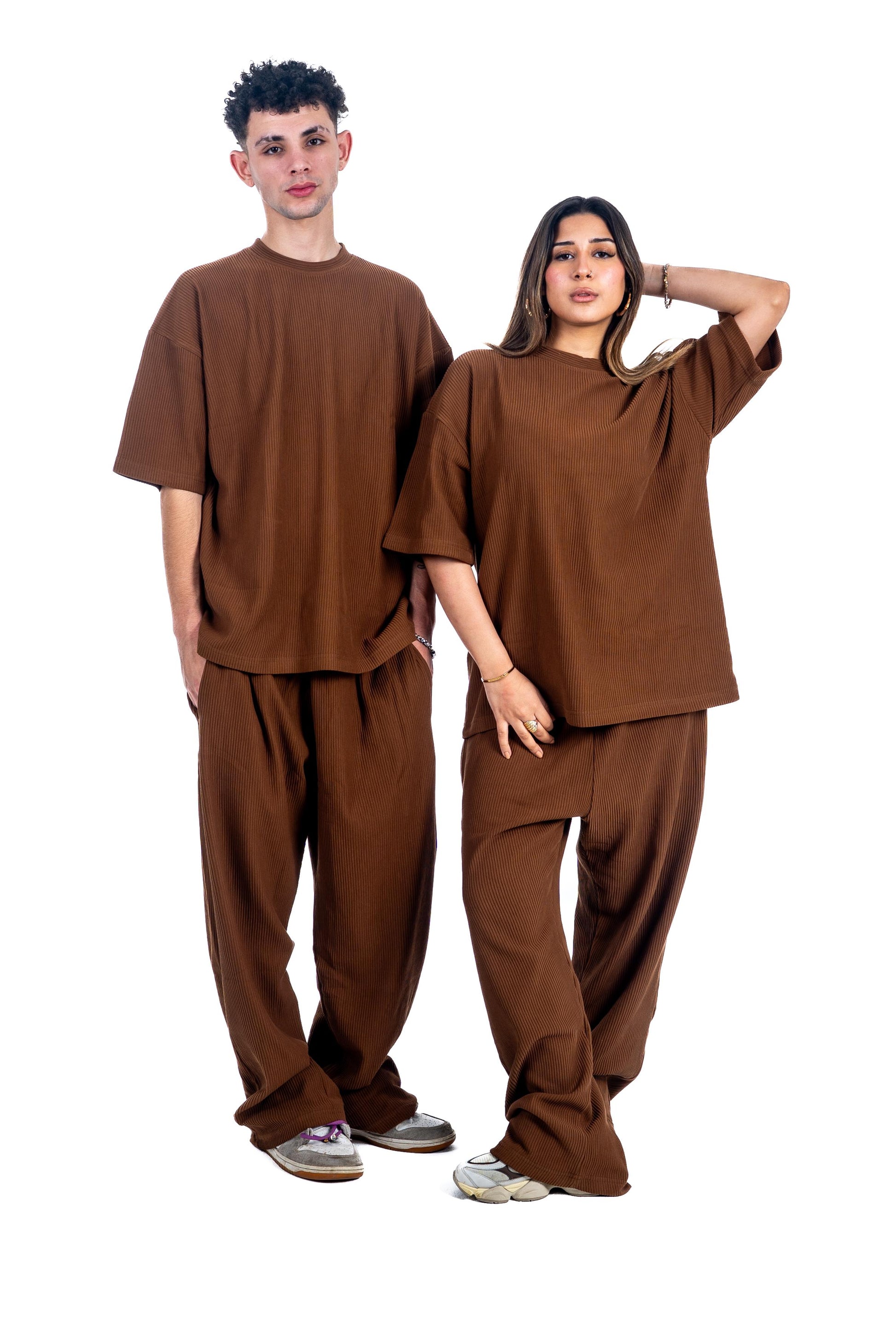 Step out in style with our unisex ribbed cotton set in a rich brown color. This two-piece outfit includes a short-sleeve t-shirt and matching pants – both made from high-quality ribbed cotton that feels soft, breathable, and lightweight on the skin.